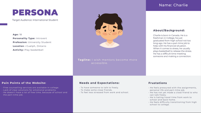Conducting user research and interviews was crucial to enhance our understanding and develop effective strategies. However, given the sensitive nature of the topic, which revolves around mental health, we had to be cautious not to overstep boundaries or make individuals feel uncomfortable.